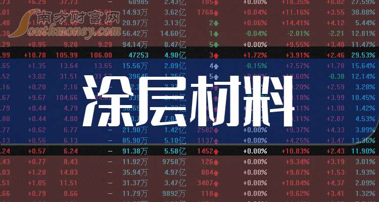 涂層材料板塊相關上市公司有哪些?據(jù)南方財富網(wǎng)概念查詢工具數(shù)據(jù)顯示,涂層材料板塊相關上市公司有: