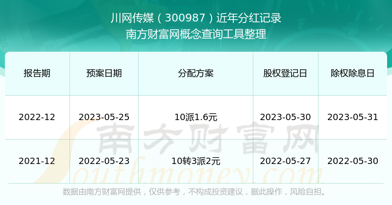一、川網(wǎng)傳媒(300987)股票分紅記錄
