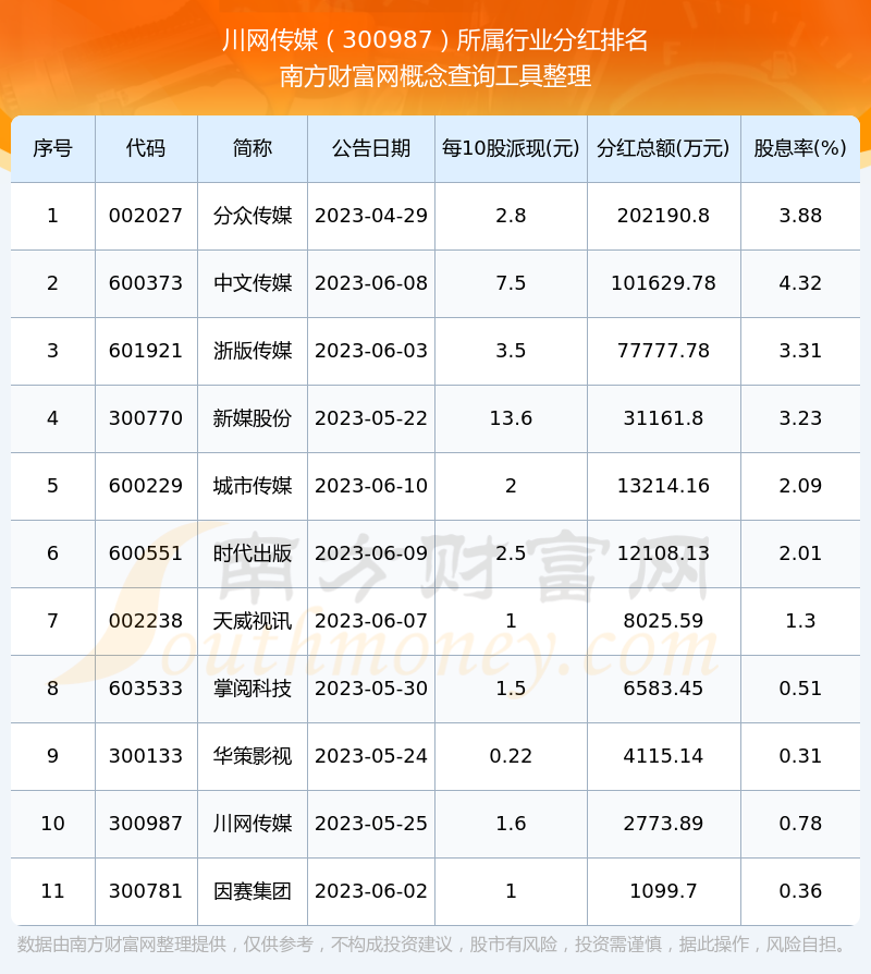 二、川網(wǎng)傳媒300987行業(yè)分紅排名