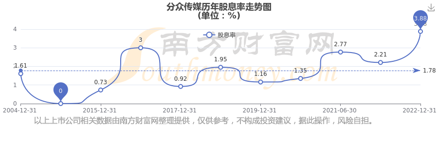 近年分眾傳媒年度股息率走勢(shì)如下圖: