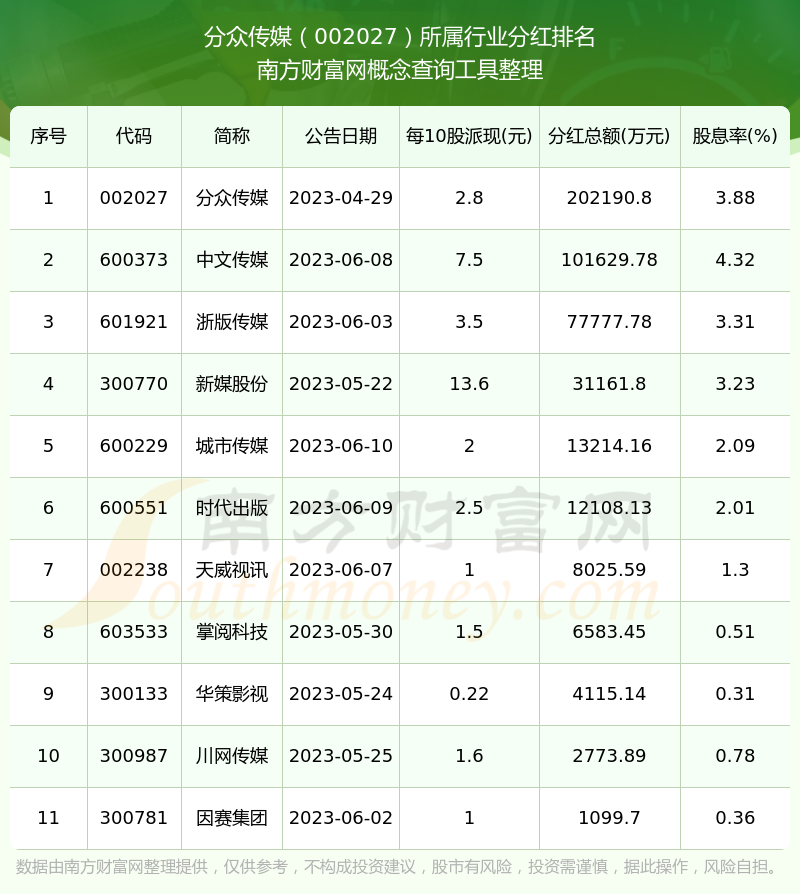 二、分眾傳媒002027行業(yè)分紅排名