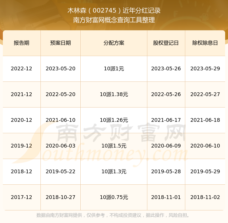木林森最新一次公布的分紅方案為10派1元。本次權(quán)益分派股權(quán)登記日為2023年5月26日,除權(quán)除息日為2023年5月29日,派息日為2023年5月29日。