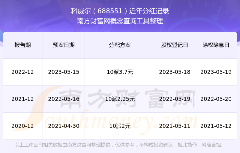 科威爾最新一次公布的分紅方案:10派3.7元。