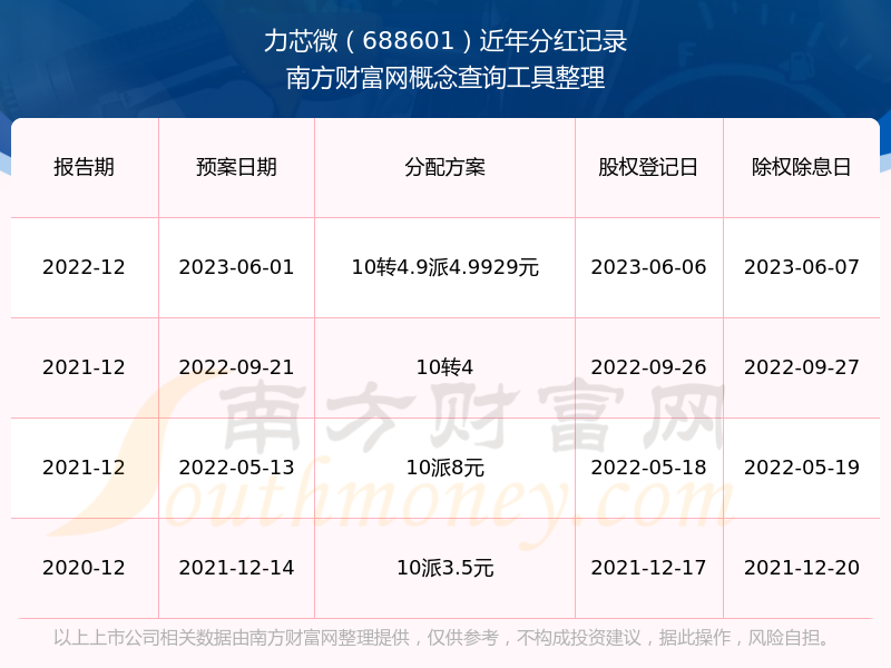 力芯微最新一次公布的分紅方案為10轉(zhuǎn)4.9派4.9929元。本次權(quán)益分派股權(quán)登記日為2023年6月6日,除權(quán)除息日為2023年6月7日,派息日為2023年6月7日。