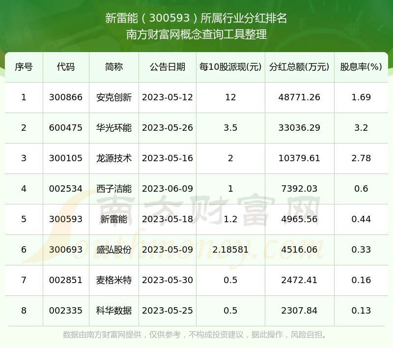 按照南方財(cái)富網(wǎng)趨勢選股系統(tǒng)統(tǒng)計(jì),新雷能所屬行業(yè)為電源設(shè)備行業(yè),電源設(shè)備行業(yè)分紅排名情況如下表: