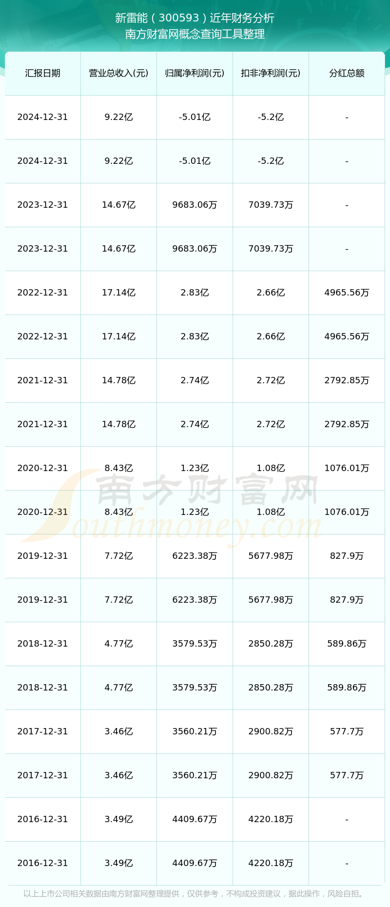 新雷能最新一次公布的分紅方案為10轉(zhuǎn)3派1.2元。本次權(quán)益分派股權(quán)登記日為2023年5月25日,除權(quán)除息日為2023年5月26日,派息日為2023年5月26日。