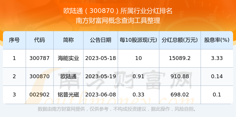 二、歐陸通300870行業(yè)分紅排名