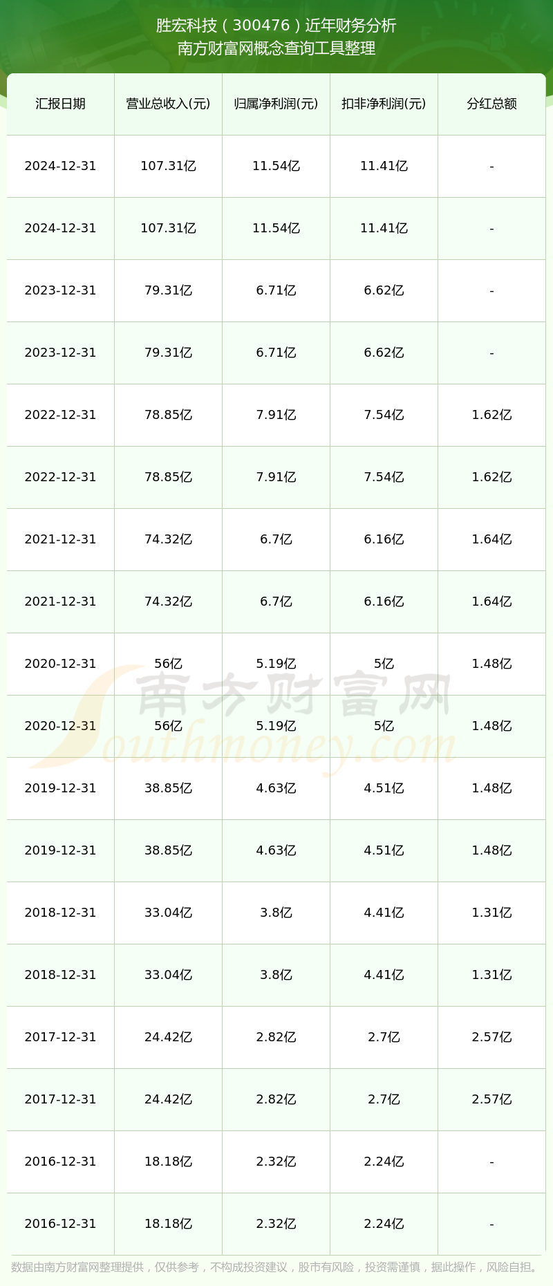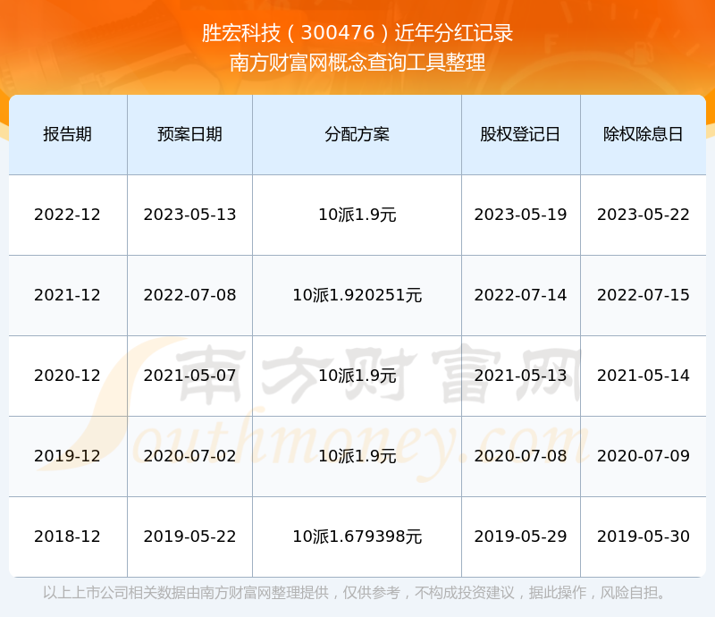 勝宏科技?xì)v年分紅派息情況如下表所示: