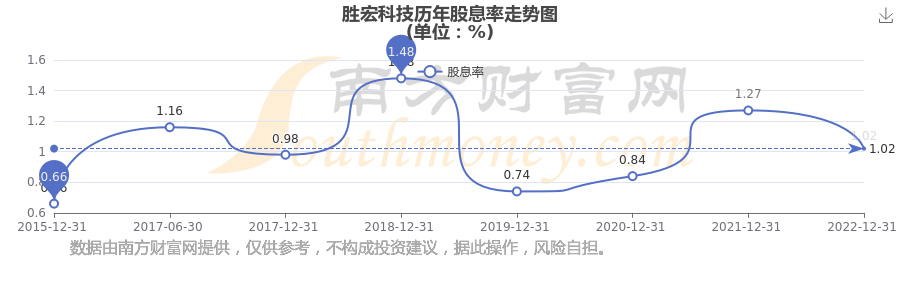 勝宏科技?xì)v年股息率走勢(shì)如下圖: