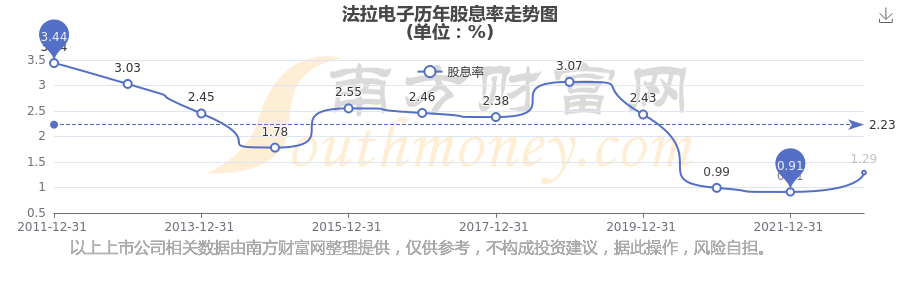 近年法拉電子年度股息率走勢(shì)如下圖: