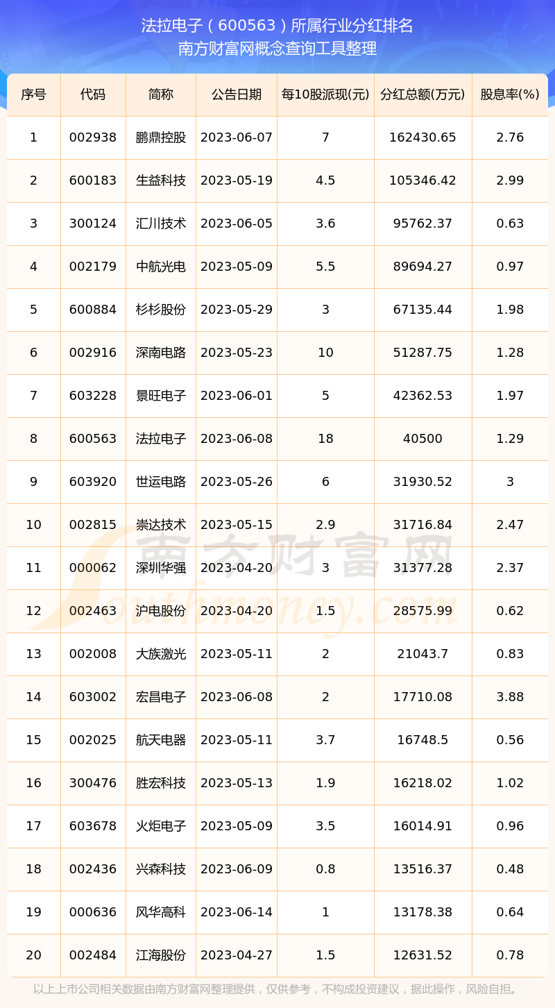 按照南方財(cái)富網(wǎng)趨勢(shì)選股系統(tǒng)統(tǒng)計(jì),法拉電子所屬行業(yè)為電容器行業(yè),電容器行業(yè)分紅排名情況如下表:
