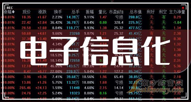 電子信息化題材上市企業(yè)有哪些?據(jù)南方財(cái)富網(wǎng)概念查詢工具數(shù)據(jù)顯示,電子信息化題材上市企業(yè)有: