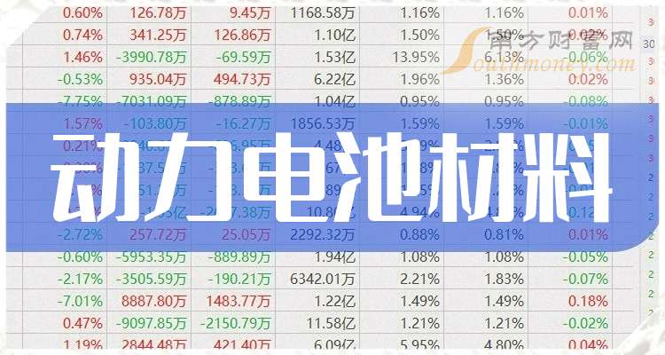 動(dòng)力電池材料上市公司龍頭有哪些?據(jù)南方財(cái)富網(wǎng)概念查詢工具數(shù)據(jù)顯示,動(dòng)力電池材料上市公司龍頭有: