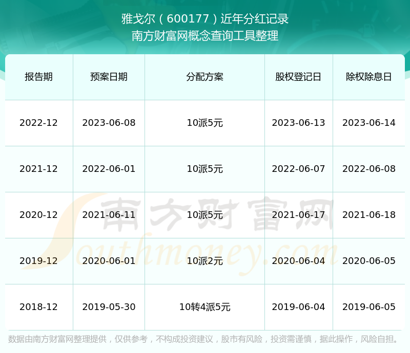 雅戈爾最新一次公布的分紅方案:10派5元。