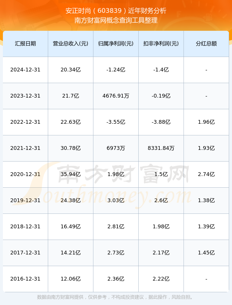 2024年報顯示,安正時尚實現(xiàn)營收20.34億,同比增長-6.23%;凈利潤-1.24億,同比增長-365.03%;毛利率46.92%。