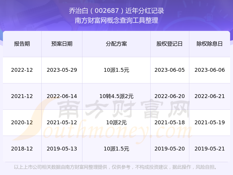喬治白最新一次公布的分紅方案:10派1.5元。
