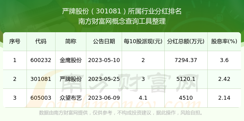 二、嚴(yán)牌股份301081行業(yè)分紅排名