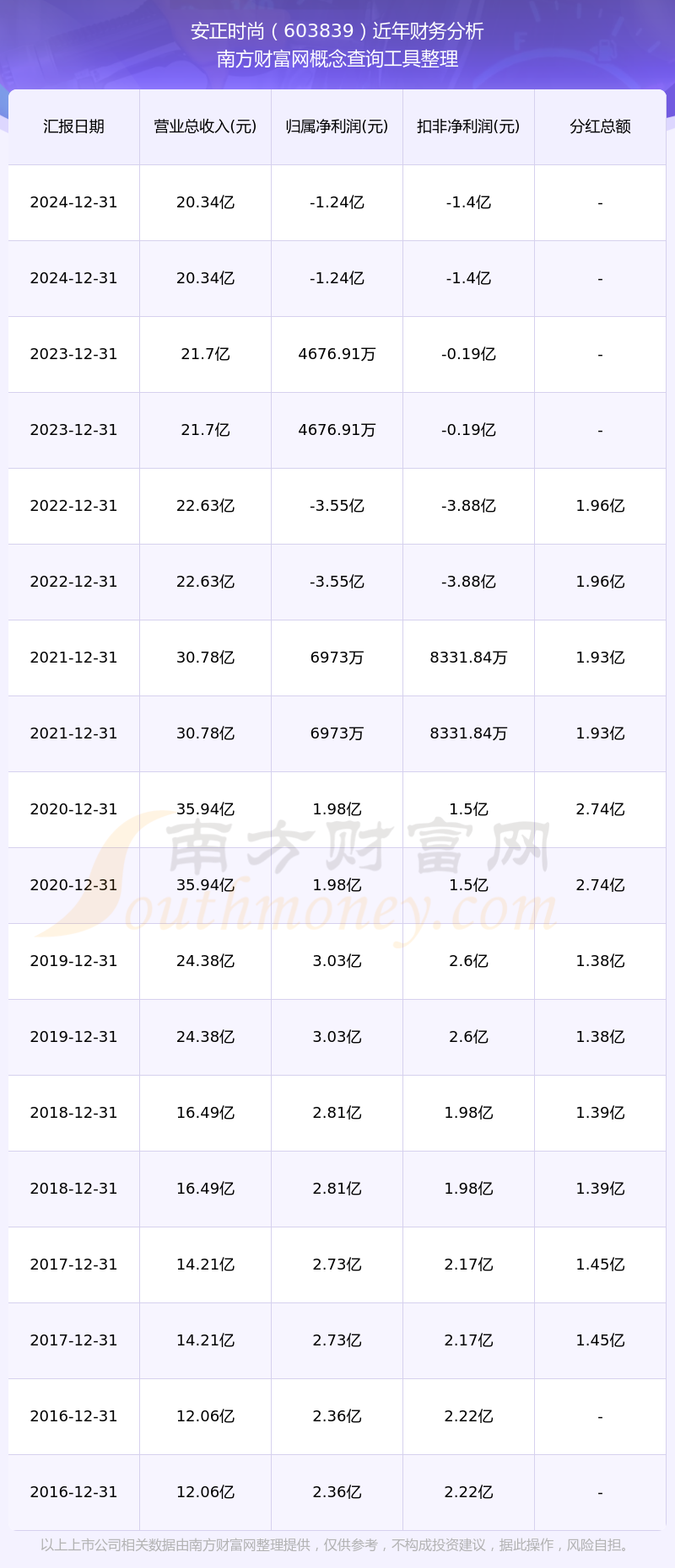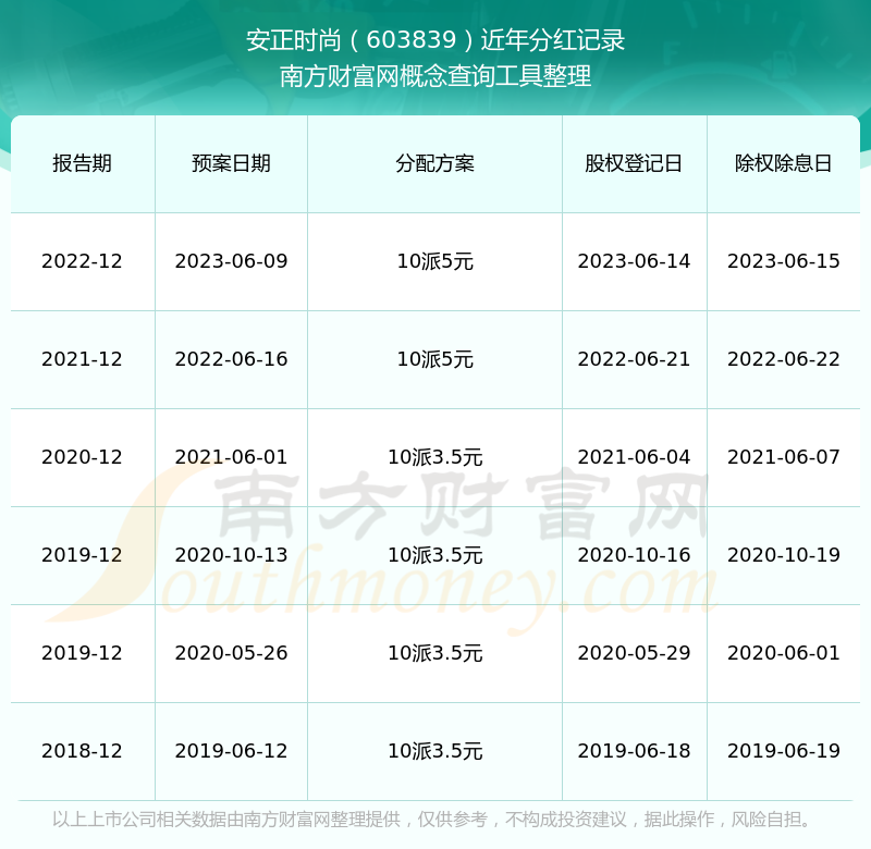 安正時(shí)尚歷年分紅派息情況如下表所示: