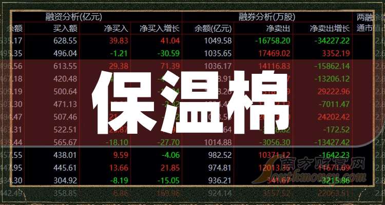 據(jù)南方財富網(wǎng)概念查詢工具數(shù)據(jù)顯示,保溫棉上市公司有: