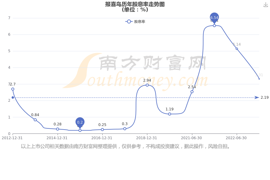 報(bào)喜鳥歷年股息率走勢如下圖: