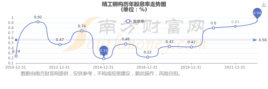 近年精工鋼構(gòu)年度股息率走勢(shì)如下圖: