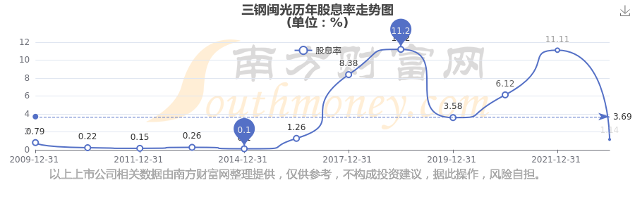 三鋼閩光歷年股息率走勢(shì)如下圖: