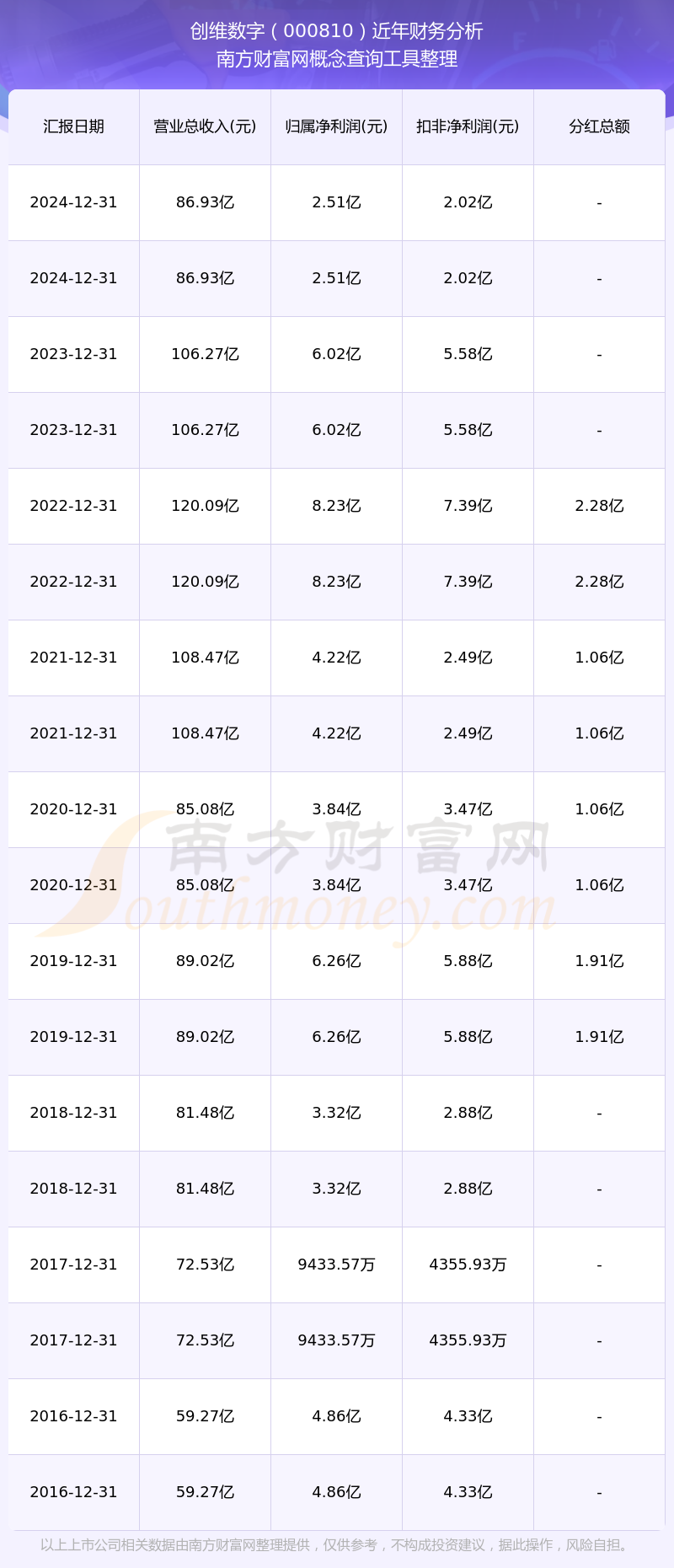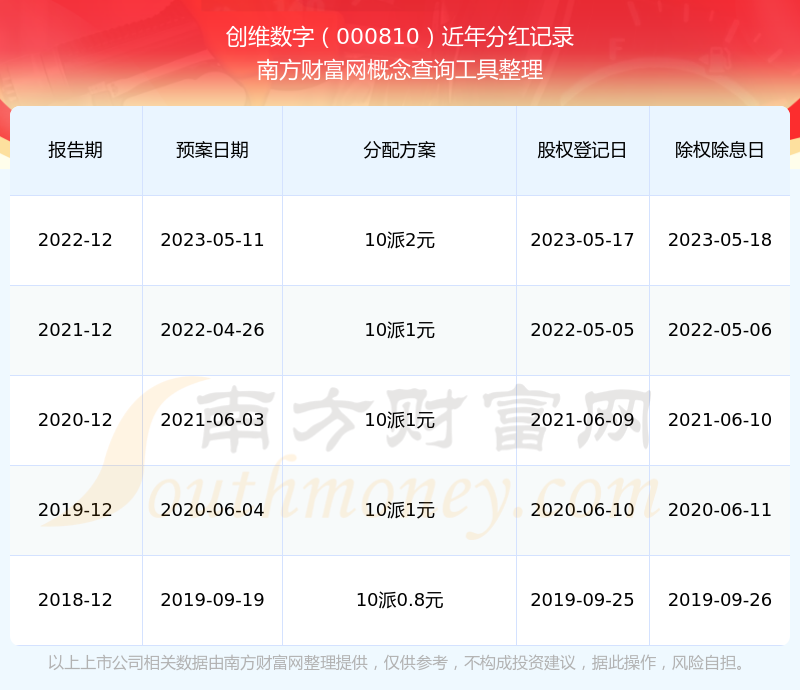 創(chuàng)維數(shù)字最新一次公布的分紅方案:10派2元。