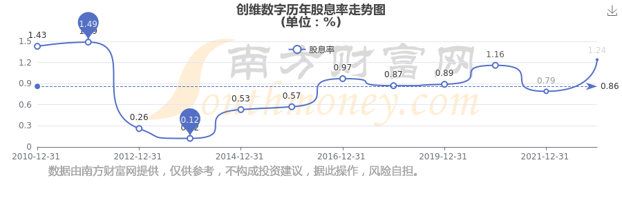 創(chuàng)維數(shù)字歷年股息率走勢如下圖: