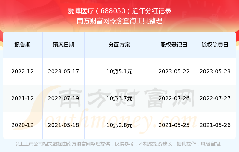 愛(ài)博醫(yī)療最新一次公布的分紅方案:10派5.1元。