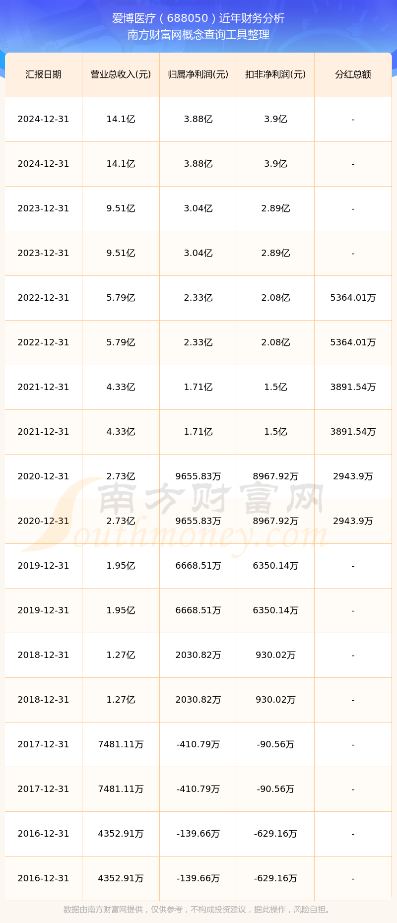 近年愛(ài)博醫(yī)療分紅派息情況如下表所示: