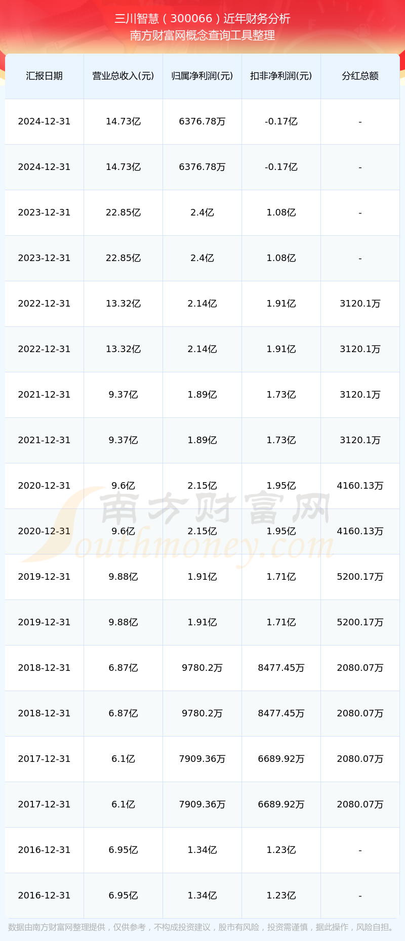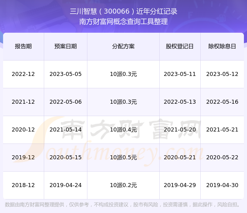 三川智慧最新一次公布的分紅方案:10派0.3元。