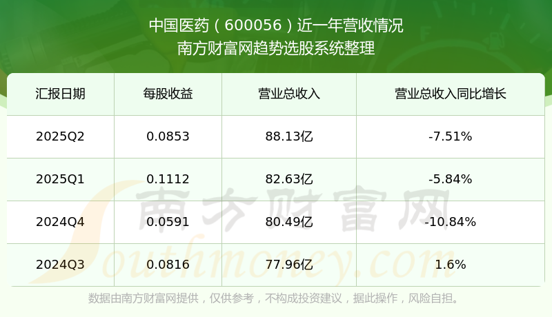 在2025年第二季度,中國醫(yī)藥的業(yè)績表現(xiàn),主營業(yè)務(wù)收入達(dá)到88.13億元,實(shí)現(xiàn)了-7.51%的同比增長率。同時(shí),公司歸母凈利潤錄得1.28億元,同比增長-37.81%。