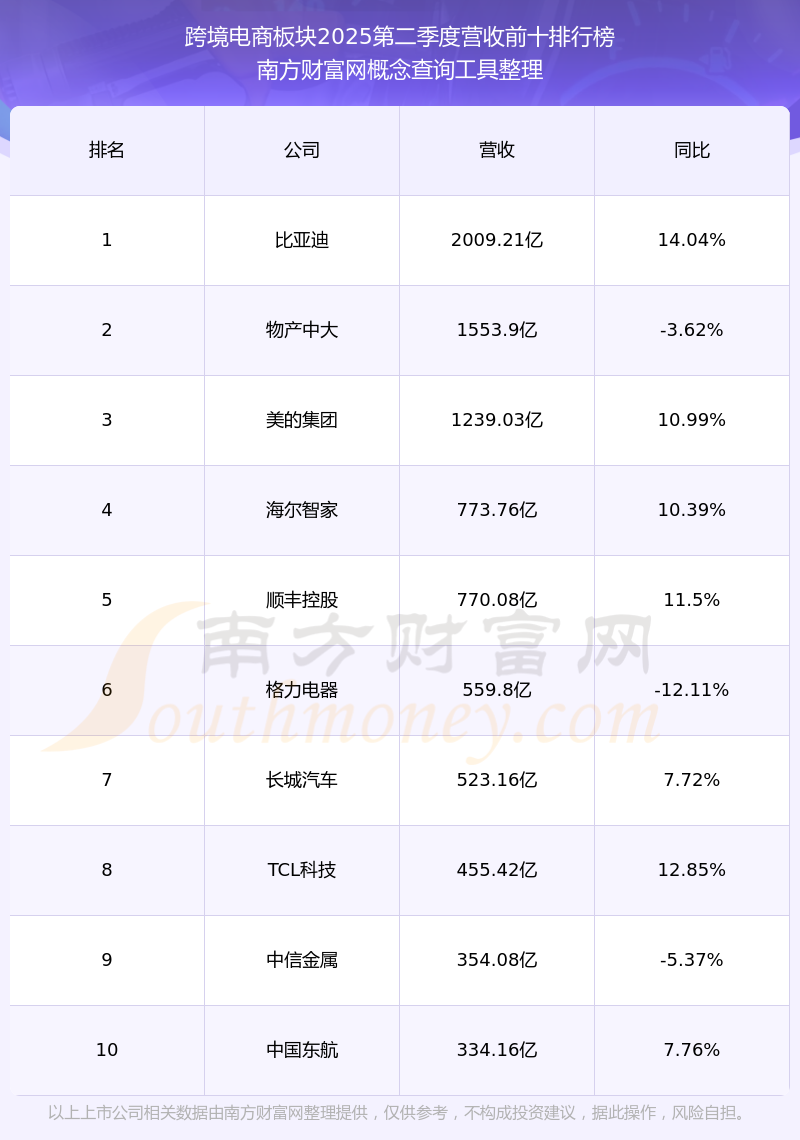 按照南方財富網(wǎng)概念查詢工具統(tǒng)計,該股所屬板塊為跨境電商板塊,該板塊共有413只股票,蘇豪弘業(yè)2025第二季度營收在該板塊中排名為第114名,該板塊2025第二季度營收排名前十的股票如下表: