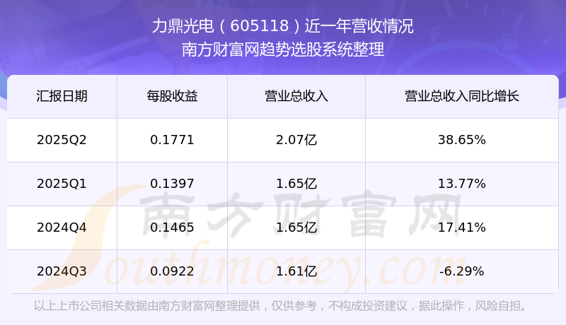 在2025年第二季度,力鼎光電的業(yè)績(jī)表現(xiàn),主營(yíng)業(yè)務(wù)收入達(dá)到2.07億元,實(shí)現(xiàn)了38.65%的同比增長(zhǎng)率。同時(shí),公司歸母凈利潤(rùn)錄得7210.82萬元,同比增長(zhǎng)63.9%。