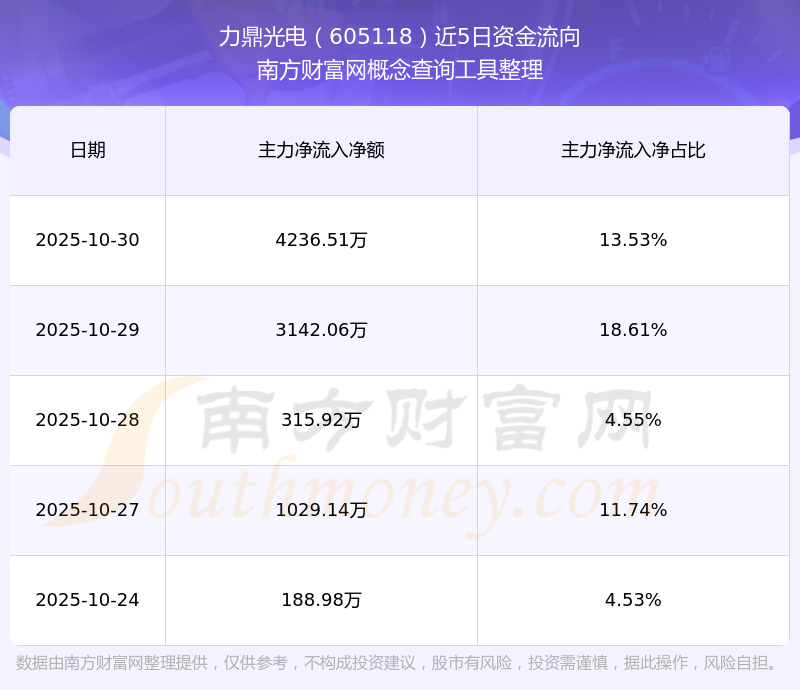 二、力鼎光電(605118)近期盤面、資金面情況
