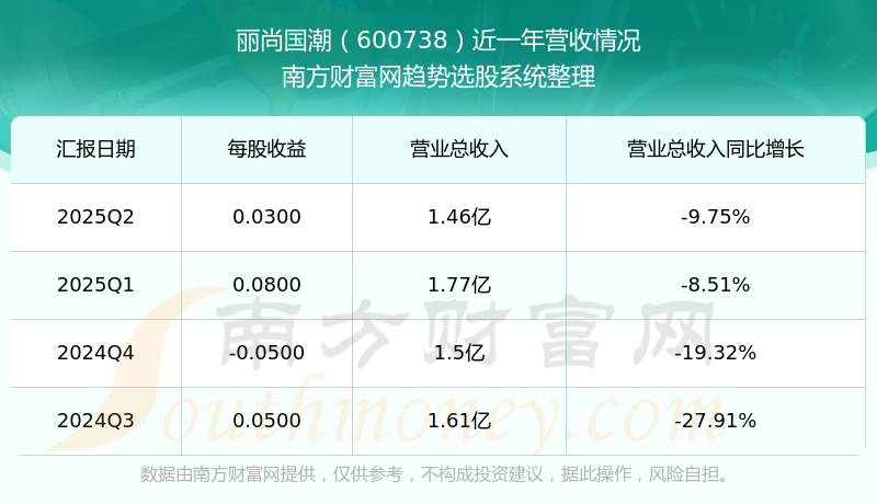按照南方財(cái)富網(wǎng)概念查詢工具統(tǒng)計(jì),該股所屬板塊為商業(yè)百貨板塊,該板塊共有75只股票,麗尚國潮2025第二季度營(yíng)收在該板塊中排名為第66名,該板塊2025第二季度營(yíng)收排名前十的股票如下表: