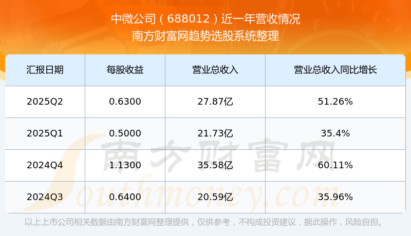 2025年第二季度,中微公司營收同比51.26%,凈利潤同比46.82%。