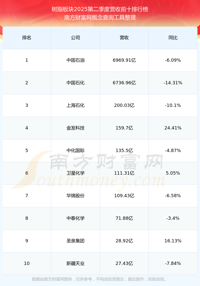 按照南方財(cái)富網(wǎng)概念查詢工具統(tǒng)計(jì),該股所屬板塊為樹脂板塊,該板塊共有33只股票,中研股份2025第二季度營(yíng)收在該板塊中排名為第33名,該板塊2025第二季度營(yíng)收排名前十的股票如下表: