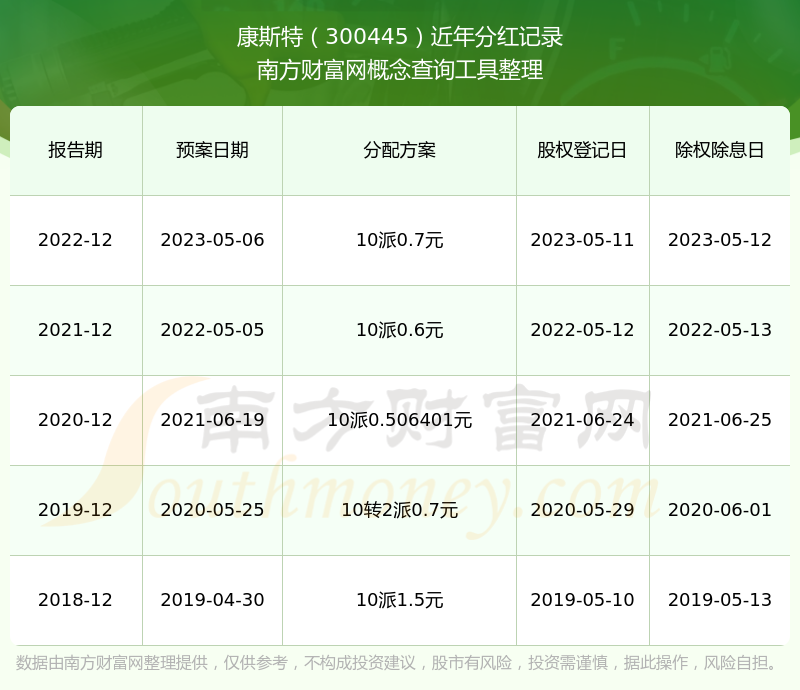 康斯特最新一次公布的分紅方案:10派0.7元。