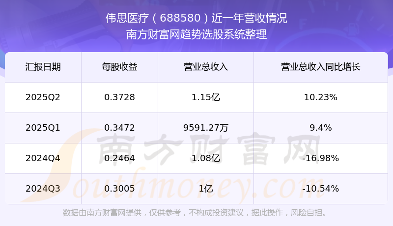 偉思醫(yī)療(688580)披露2025年第二季度報(bào)告,報(bào)告期實(shí)現(xiàn)營收1.15億元,同比10.23%;歸母凈利潤3610.42萬元,同比29.56%;扣非凈利潤3303.3萬元,同比36.27%。