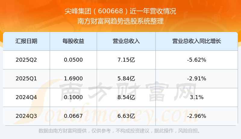 尖峰集團(tuán)股票近一年營收情況如下表: