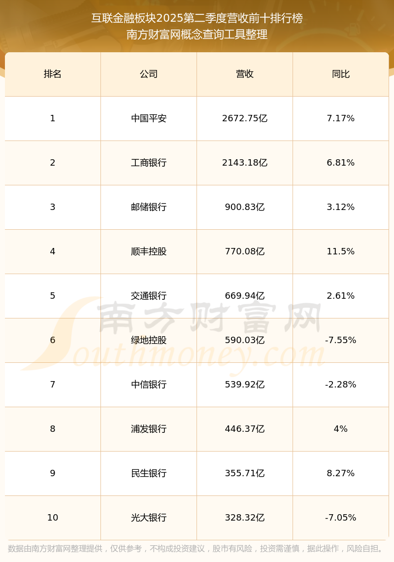 按照南方財(cái)富網(wǎng)概念查詢工具統(tǒng)計(jì),該股所屬板塊為互聯(lián)金融板塊,該板塊共有238只股票,民生銀行2025第二季度營(yíng)收在該板塊中排名為第9名,該板塊2025第二季度營(yíng)收排名前十的股票如下表: