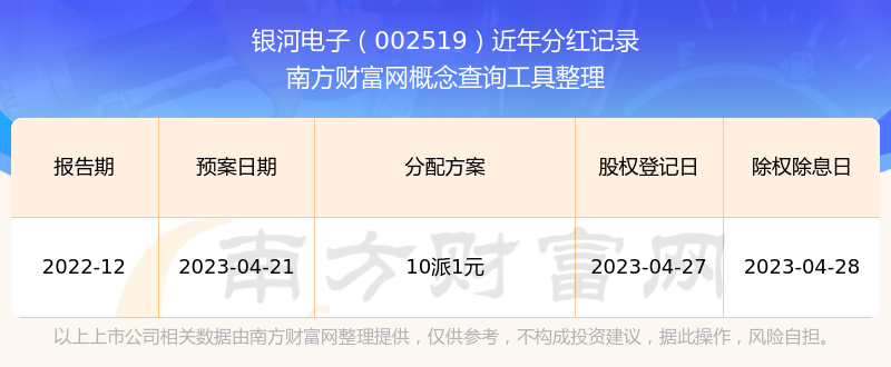 一、銀河電子(002519)股票分紅記錄