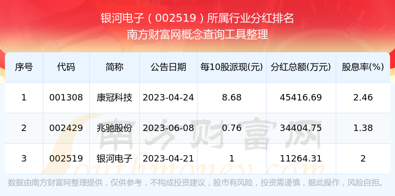 二、銀河電子002519行業(yè)分紅排名