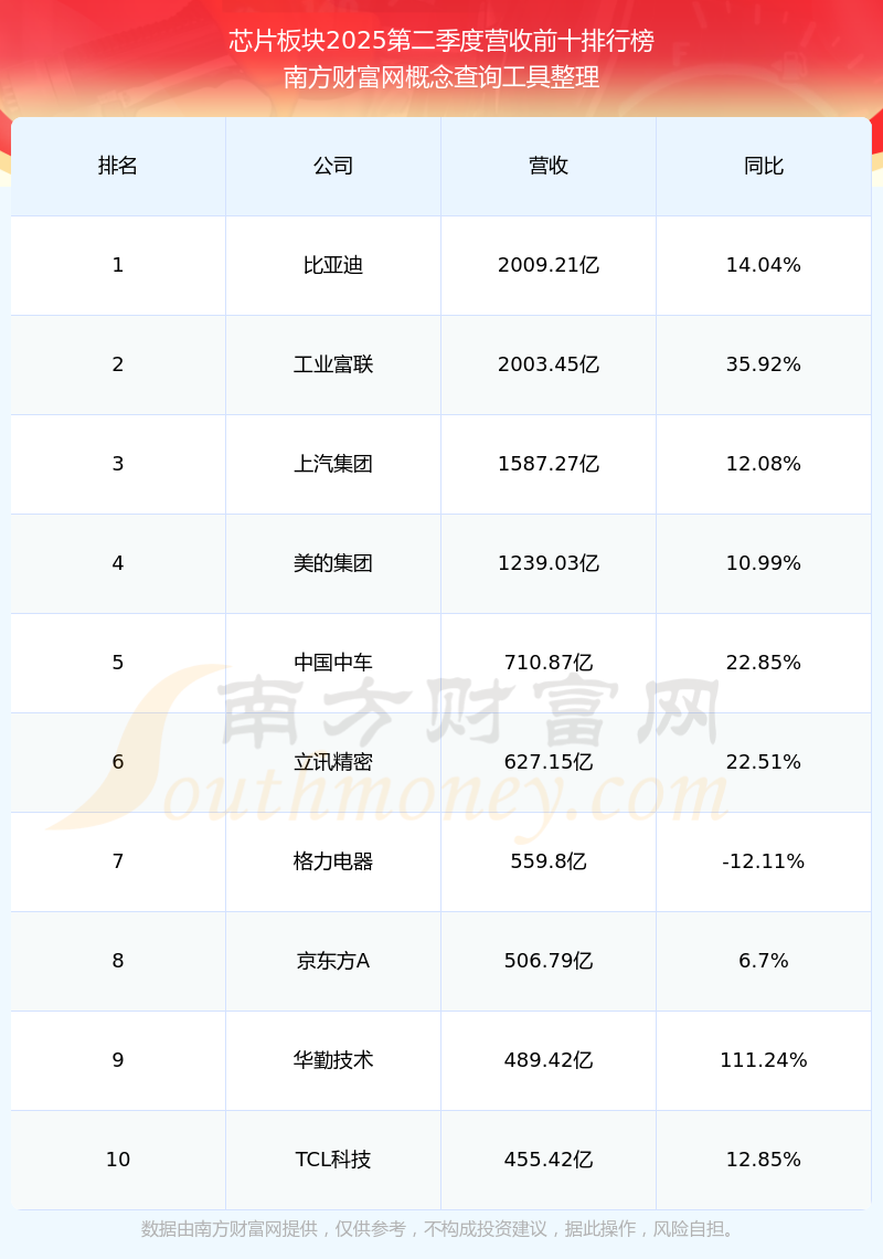 按照南方財(cái)富網(wǎng)概念查詢工具統(tǒng)計(jì),該股所屬板塊為芯片板塊,該板塊共有901只股票,希荻微2025第二季度營收在該板塊中排名為第563名,該板塊2025第二季度營收排名前十的股票如下表: