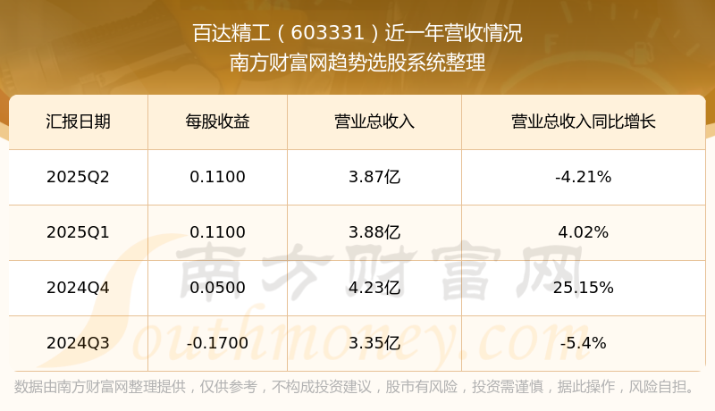 一、百達(dá)精工(603331)股票營(yíng)收情況