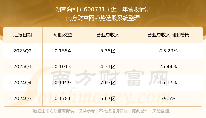 湖南海利2025年第二季度財報顯示,公司主營收入5.35億元,同比-23.29%;歸母凈利潤8683.96萬元,同比-5.04%;扣非凈利潤4432.51萬元,同比-50.31%。