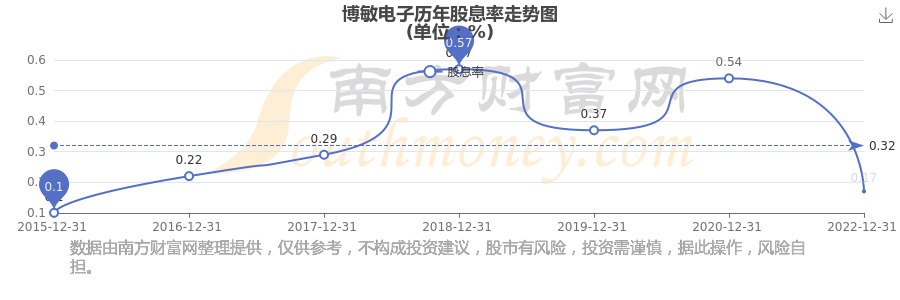 近年博敏電子年度股息率走勢(shì)如下圖: