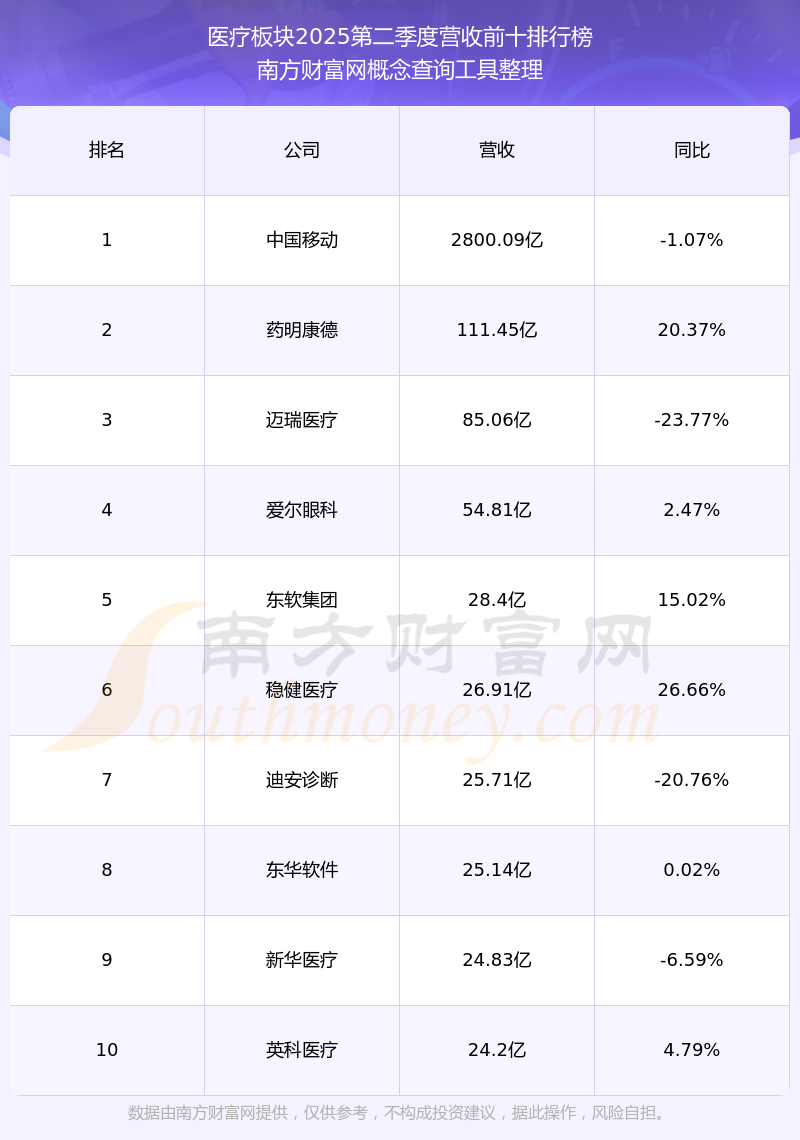 按照南方財富網(wǎng)概念查詢工具統(tǒng)計,該股所屬板塊為醫(yī)療板塊,該板塊共有118只股票,美爾雅2025第二季度營收在該板塊中排名為第118名,該板塊2025第二季度營收排名前十的股票如下表: