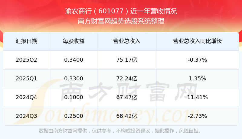 在2025年第二季度,渝農(nóng)商行的業(yè)績(jī)表現(xiàn),主營(yíng)業(yè)務(wù)收入達(dá)到75.17億元,實(shí)現(xiàn)了-0.37%的同比增長(zhǎng)率。同時(shí),公司歸母凈利潤(rùn)錄得39.54億元,同比增長(zhǎng)3.14%。